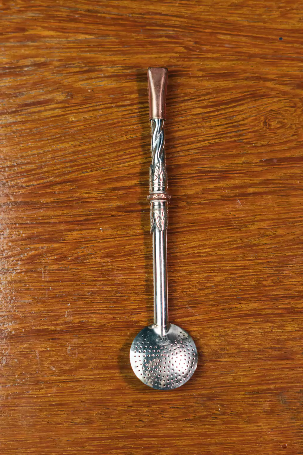 A Bomba de Alpaca com corpo trabalhado e anel de bronze é a escolha ideal para os apreciadores do chimarrão. Feita de alpaca, uma liga metálica composta por cobre, níquel e zinco, oferece durabilidade e um toque elegante.